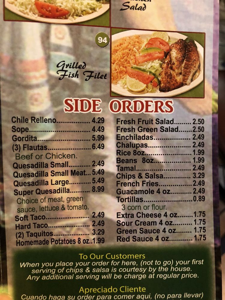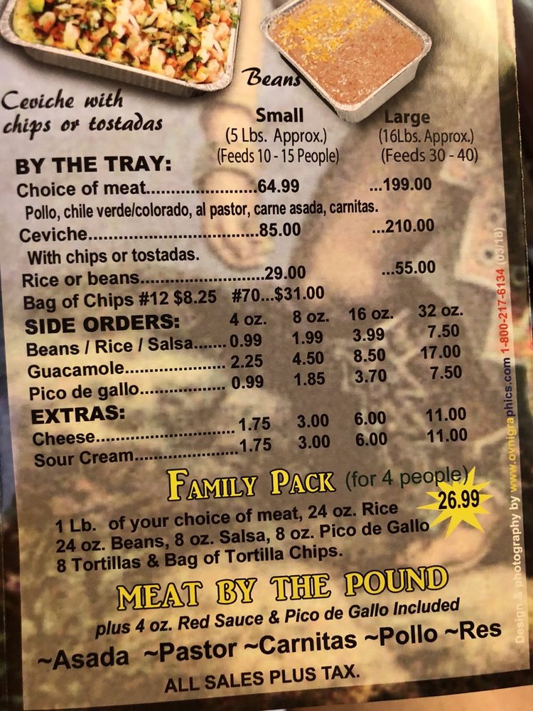 Pollo, chile verde / colorado, al pastor, carne asada, carnitas
